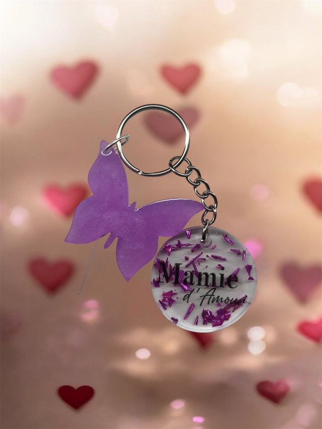 Porte clé "mamie d'amour" + charms en résine époxy